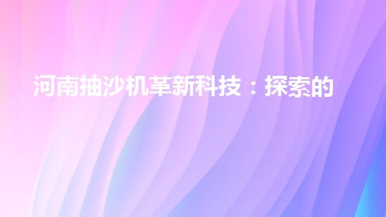 河南抽沙機革新科技:探索的未來?